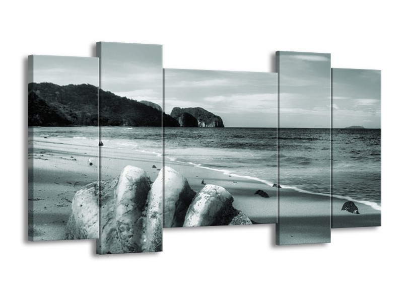 Canvas Schilderij Schelp, Strand | Grijs, Groen | 120x65cm 5Luik