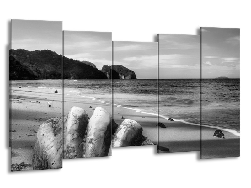 Canvas Schilderij Schelp, Strand | Zwart, Grijs | 150x80cm 5Luik