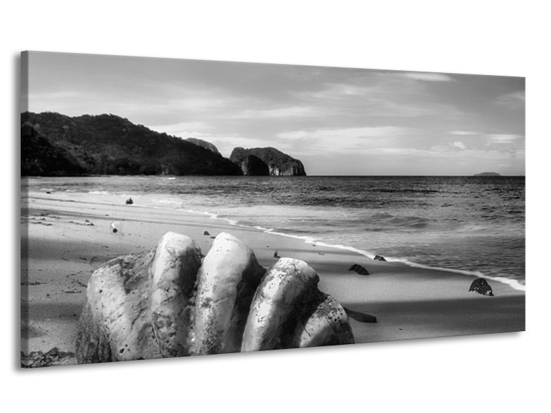 Canvas Schilderij Schelp, Strand | Zwart, Grijs | 170x90cm 1Luik