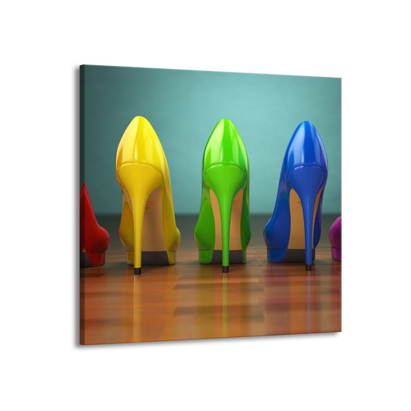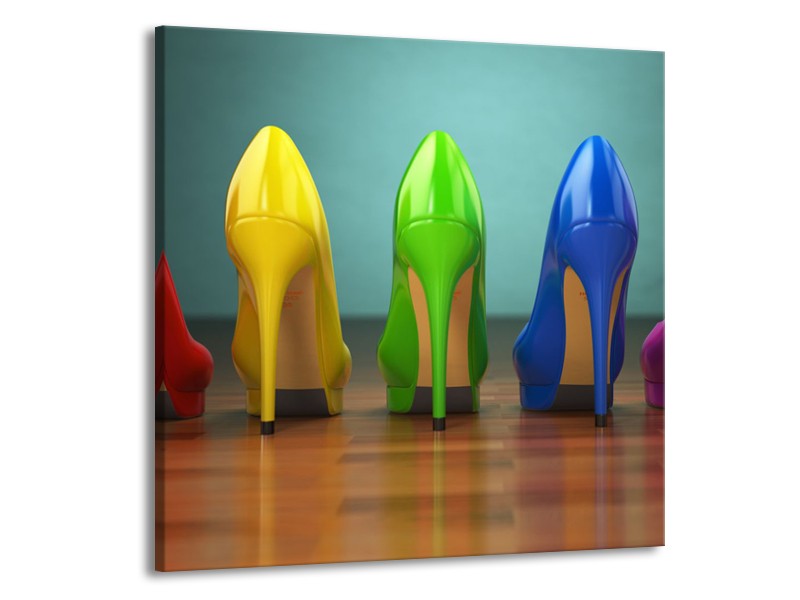 Canvas Schilderij Schoenen, Vrouw | Bruin, Groen, Geel | 50x50cm 1Luik