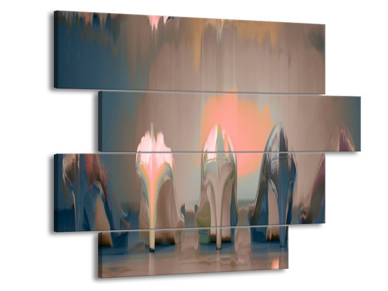 Canvas Schilderij Schoenen, Vrouw | Grijs, Bruin | 115x85cm 4Luik