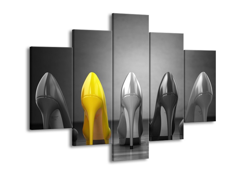 Canvas Schilderij Schoenen, Vrouw | Grijs, Geel | 150x105cm 5Luik