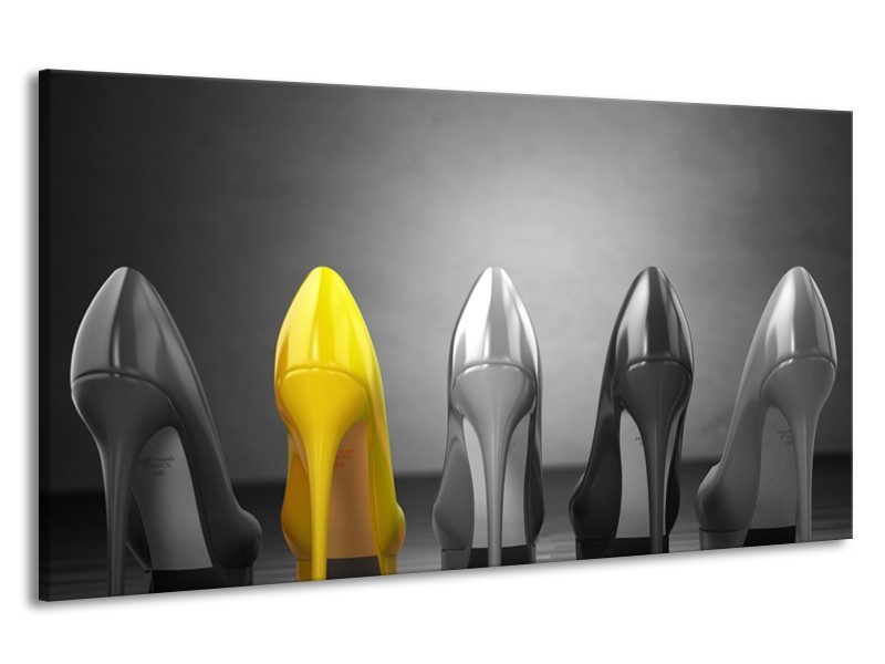 Canvas Schilderij Schoenen, Vrouw | Grijs, Geel | 190x100cm 1Luik
