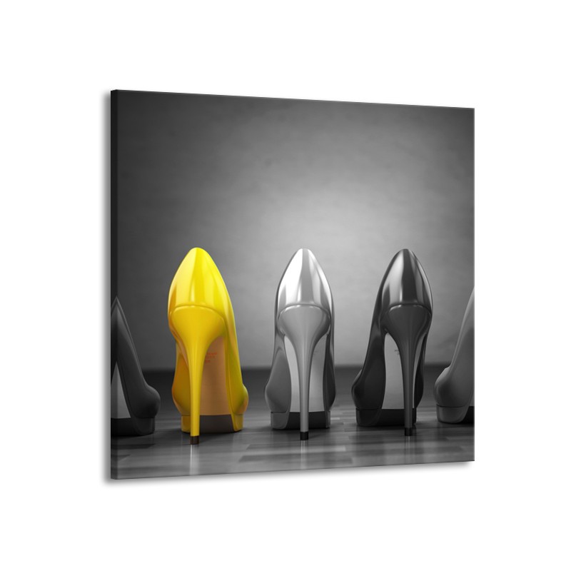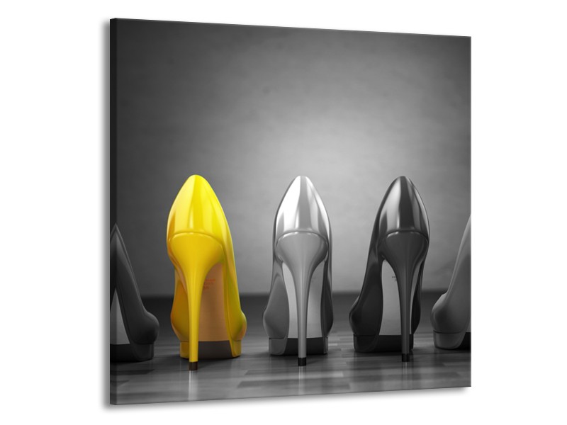 Canvas Schilderij Schoenen, Vrouw | Grijs, Geel | 50x50cm 1Luik