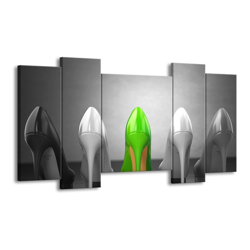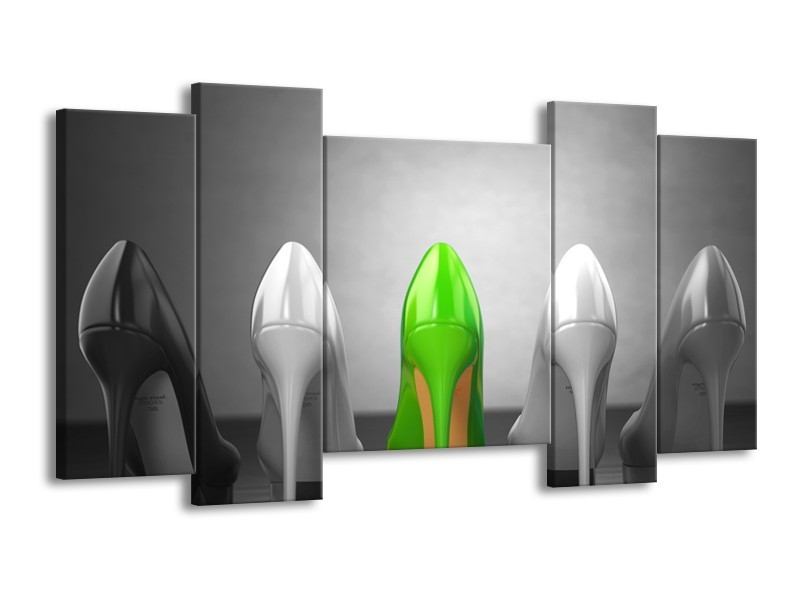 Canvas Schilderij Schoenen, Vrouw | Grijs, Groen, Zwart | 120x65cm 5Luik