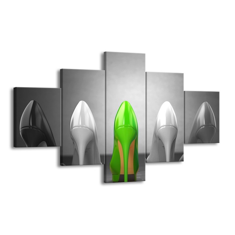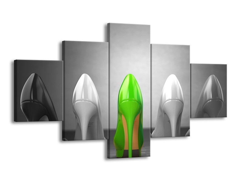 Canvas Schilderij Schoenen, Vrouw | Grijs, Groen, Zwart | 125x70cm 5Luik