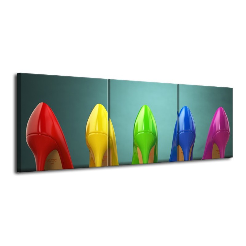 Canvas Schilderij Schoenen, Vrouw | Groen, Blauw, Rood | 120x40cm 3Luik