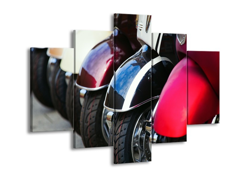 Canvas Schilderij Scooter | Grijs, Roze, Zwart | 150x105cm 5Luik