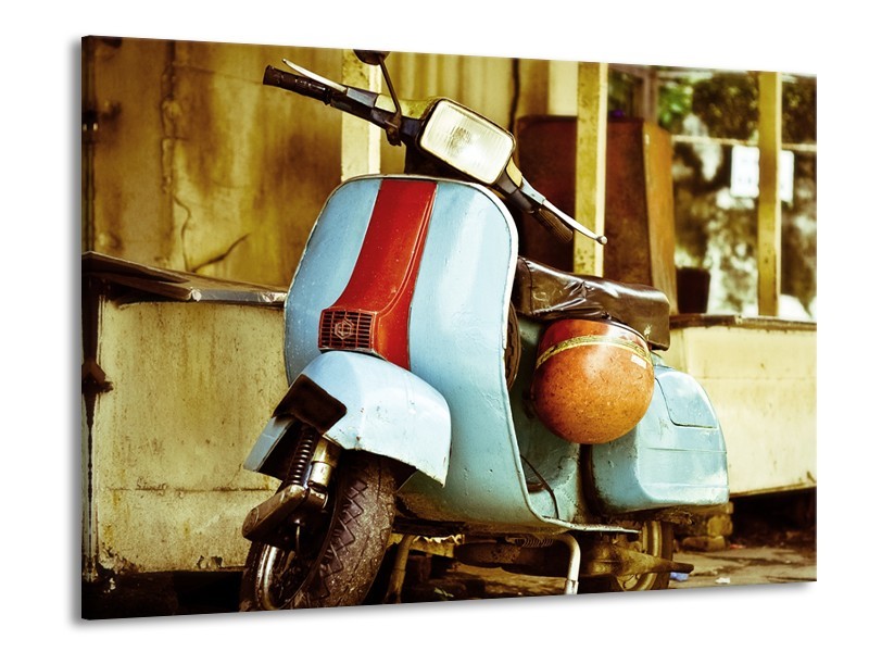 Canvas Schilderij Scooter, Motor | Bruin, Geel, Blauw | 100x70cm 1Luik