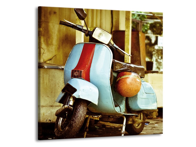 Canvas Schilderij Scooter, Motor | Bruin, Geel, Blauw | 50x50cm 1Luik