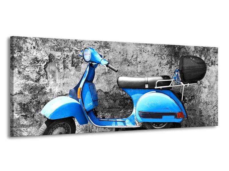 Canvas Schilderij Scooter, Motor | Grijs, Blauw | 145x58cm 1Luik