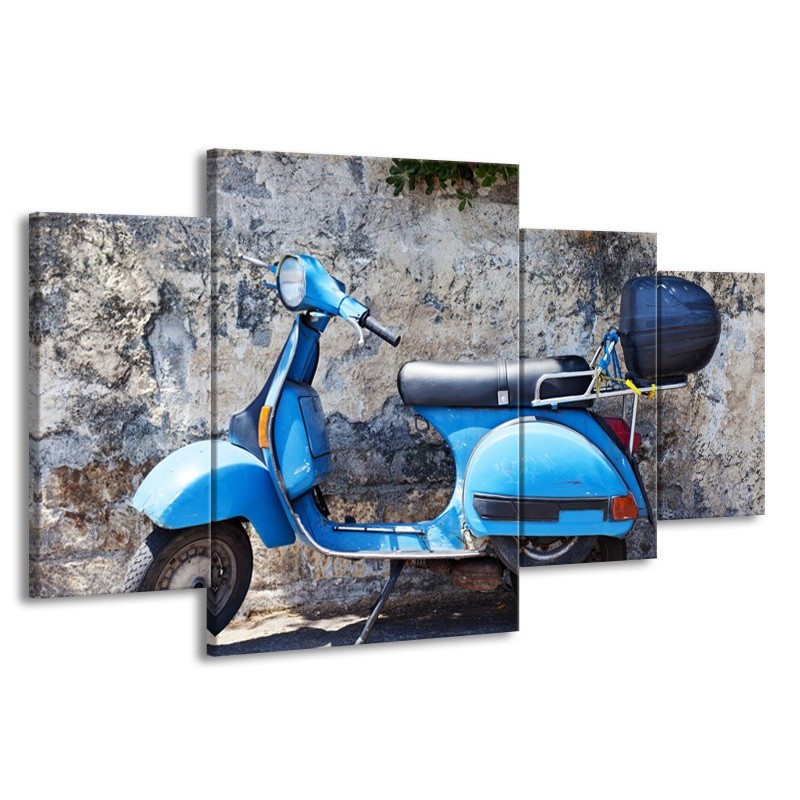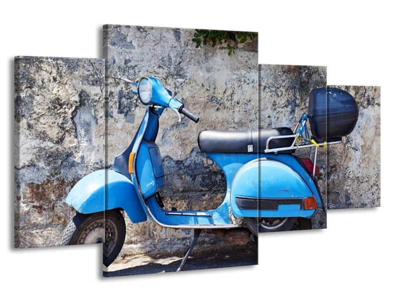 Canvas Schilderij Scooter, Motor | Grijs, Blauw | 160x90cm 4Luik