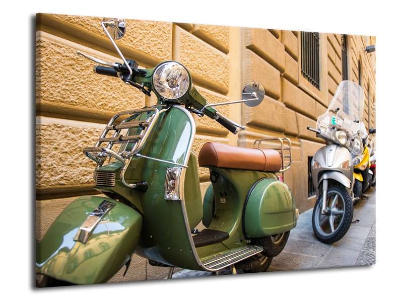 Canvas Schilderij Scooter, Motor | Groen, Bruin, Crème | 70x50cm 1Luik