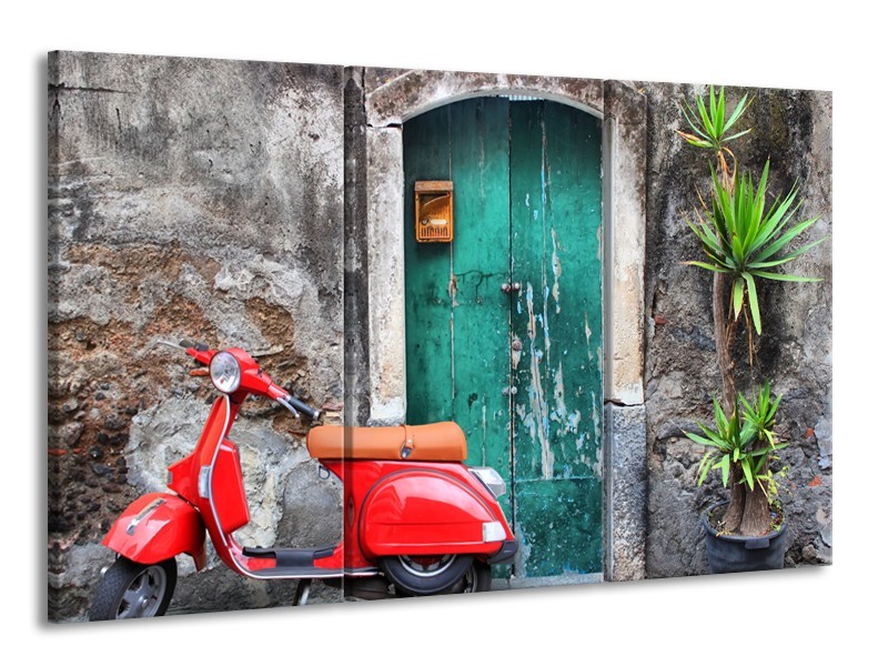 Canvas Schilderij Scooter, Motor | Groen, Rood, Grijs | 165x100cm 3Luik