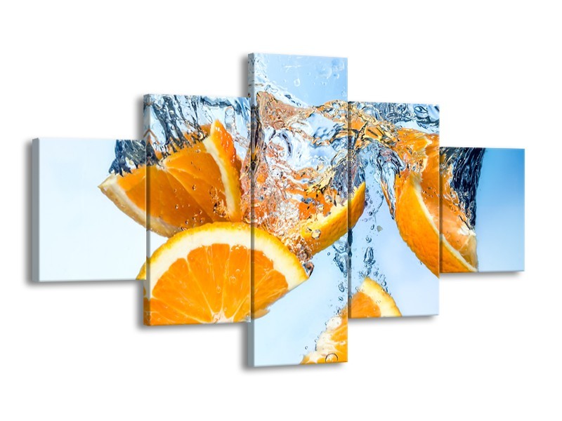Canvas Schilderij Sinaasappel, Keuken | Geel, Blauw | 125x70cm 5Luik