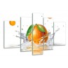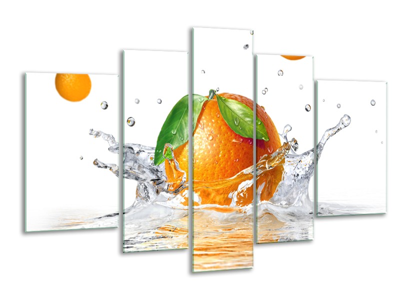Canvas Schilderij Sinaasappel, Keuken | Wit, Oranje, Groen | 170x100cm 5Luik