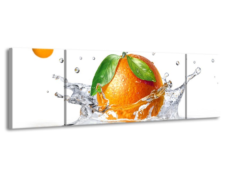Canvas Schilderij Sinaasappel, Keuken | Wit, Oranje, Groen | 170x50cm 3Luik
