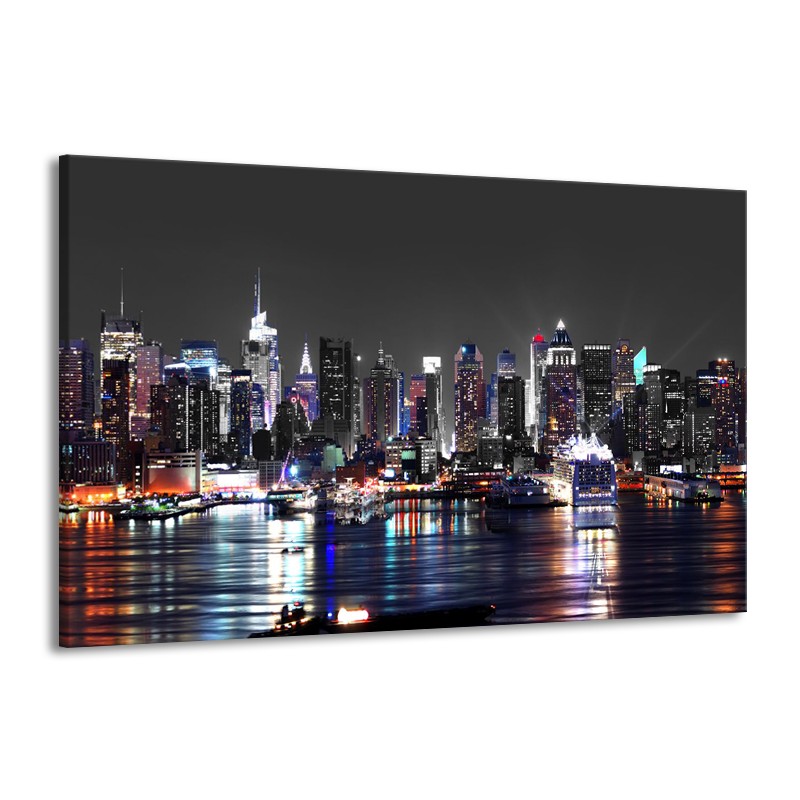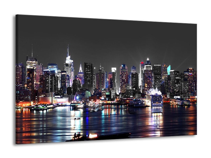 Canvas Schilderij Skyline, Steden | Grijs, Zwart, Paars | 140x90cm 1Luik