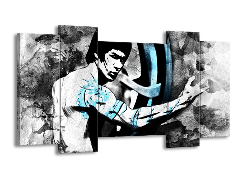 Canvas Schilderij Sport, Man | Grijs, Zwart, Blauw | 120x65cm 5Luik
