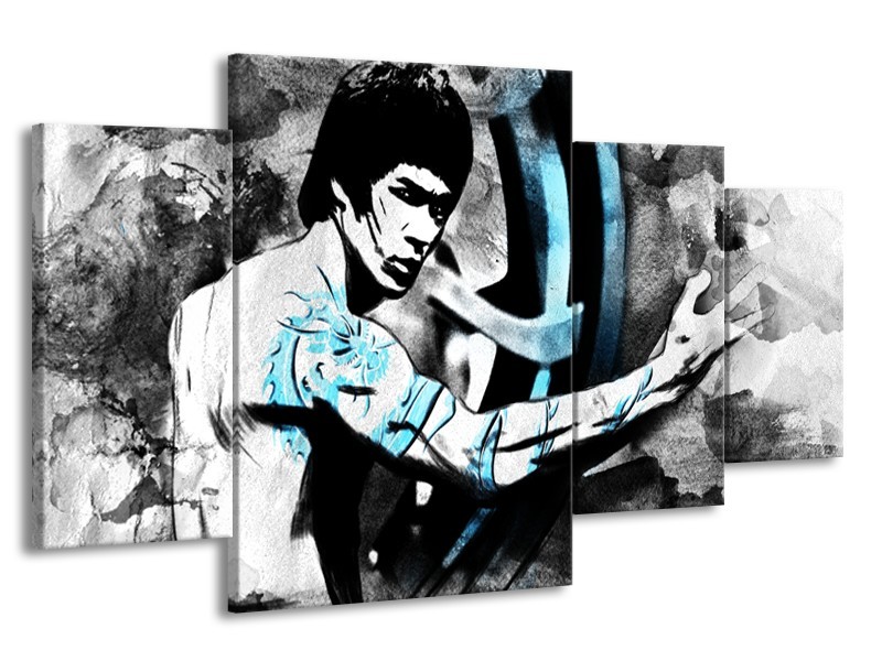 Canvas Schilderij Sport, Man | Grijs, Zwart, Blauw | 160x90cm 4Luik