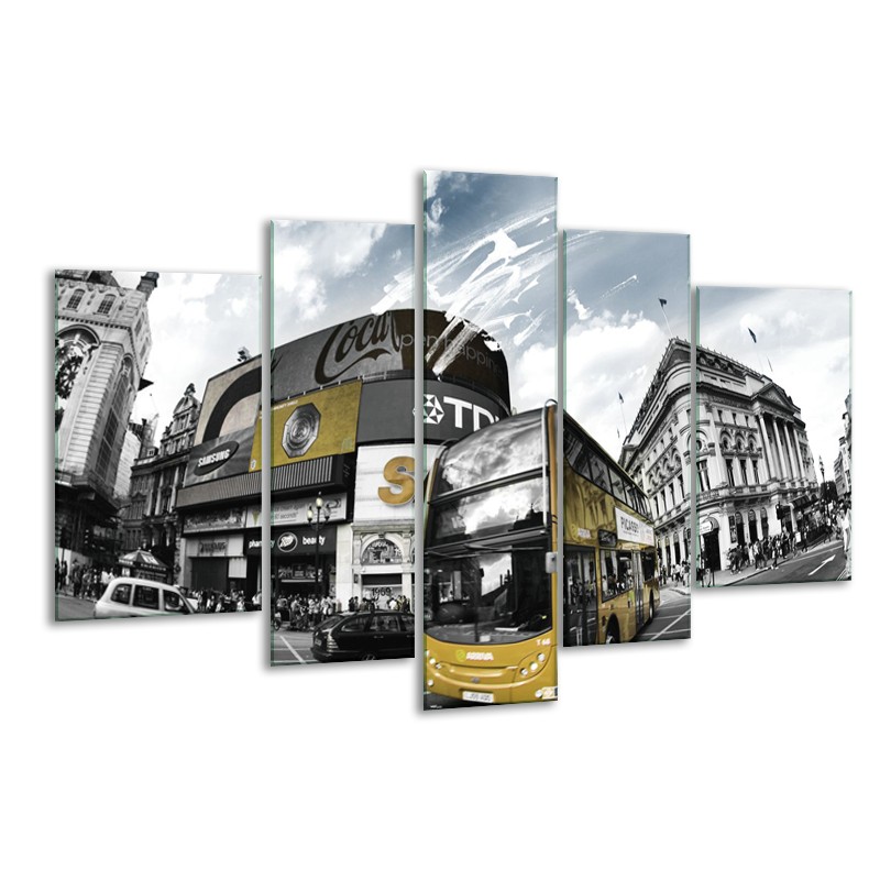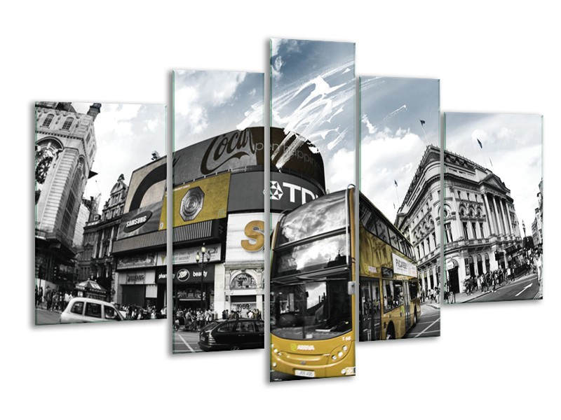 Canvas Schilderij Steden, Abstract | Geel, Grijs, Wit | 170x100cm 5Luik