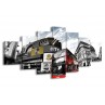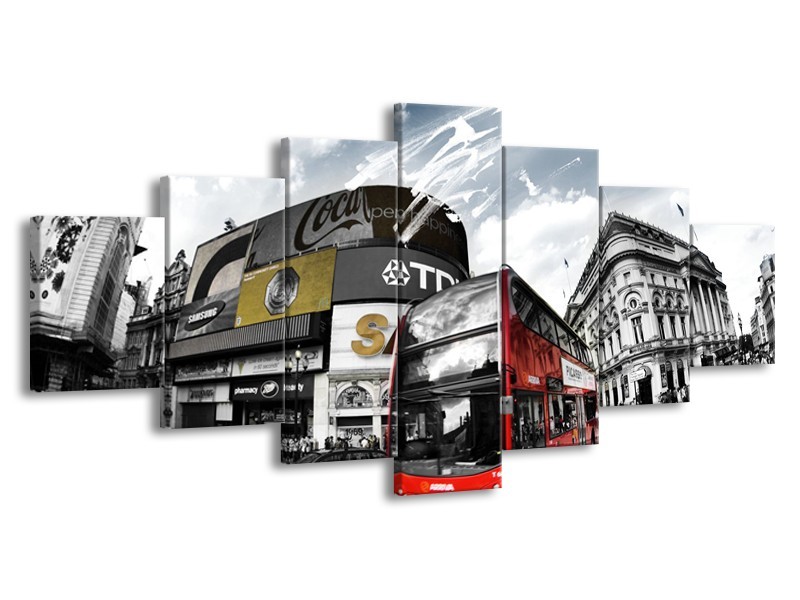 Canvas Schilderij Steden, Abstract | Zwart, Grijs, Rood | 210x100cm 7Luik