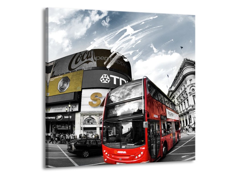 Canvas Schilderij Steden, Abstract | Zwart, Grijs, Rood | 50x50cm 1Luik