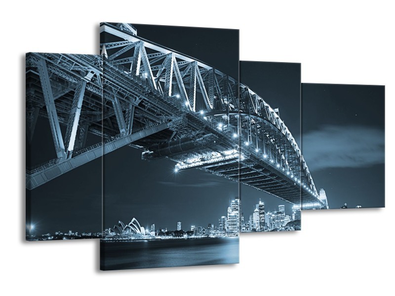 Canvas Schilderij Steden, Brug | Blauw | 120x75cm 4Luik