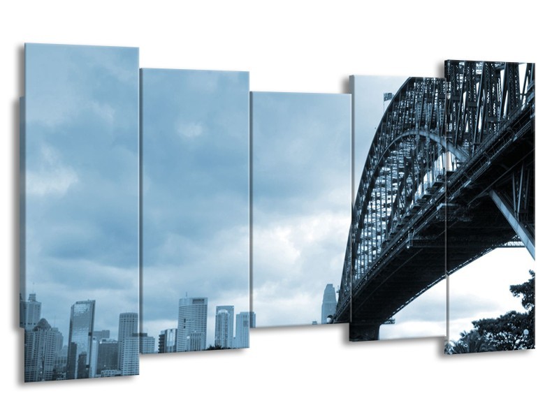 Canvas Schilderij Steden, Brug | Blauw | 150x80cm 5Luik