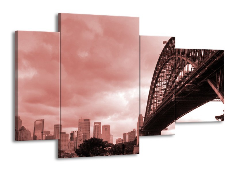 Canvas Schilderij Steden, Brug | Bruin, Rood | 120x75cm 4Luik