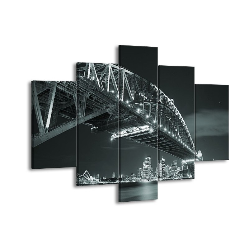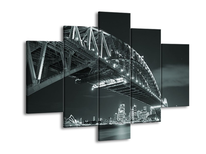Canvas Schilderij Steden, Brug | Grijs, Groen | 150x105cm 5Luik