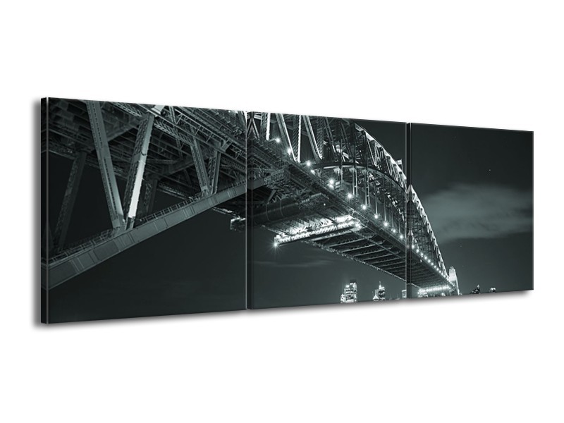 Canvas Schilderij Steden, Brug | Grijs, Groen | 150x50cm 3Luik