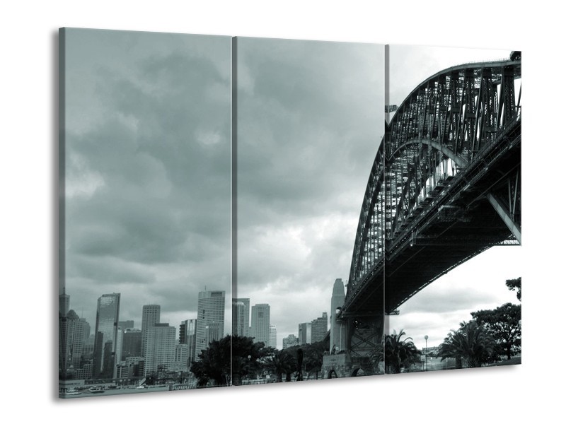 Canvas Schilderij Steden, Brug | Grijs, Groen | 60x90cm 3Luik