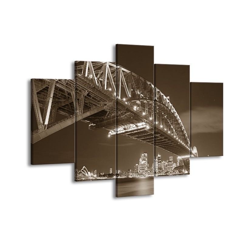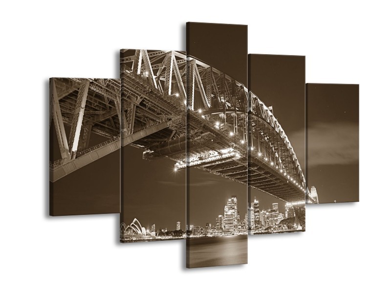 Canvas Schilderij Steden, Brug | Sepia | 150x105cm 5Luik