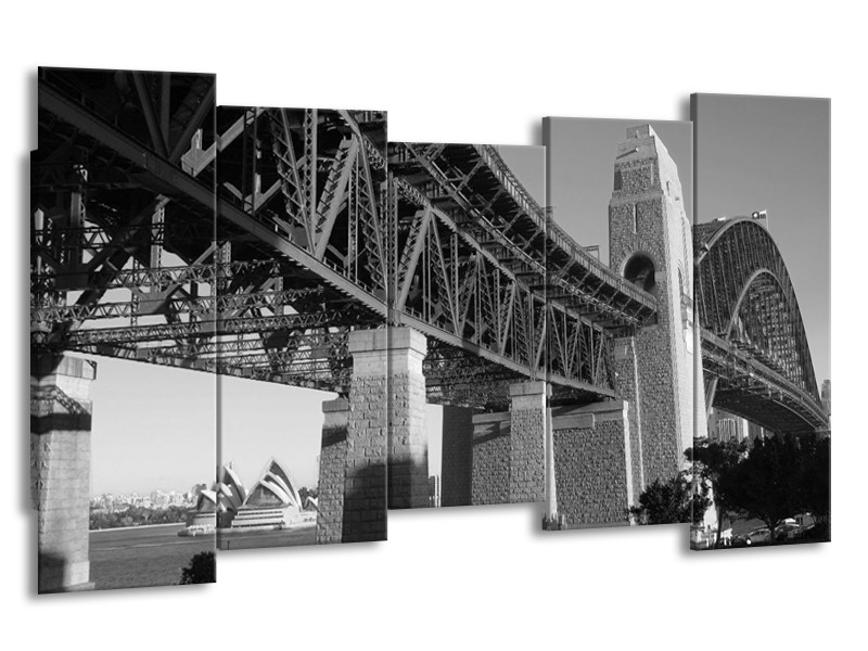 Canvas Schilderij Steden, Brug | Zwart, Grijs | 150x80cm 5Luik