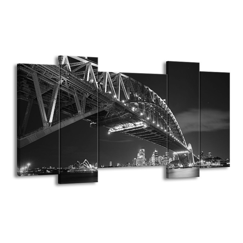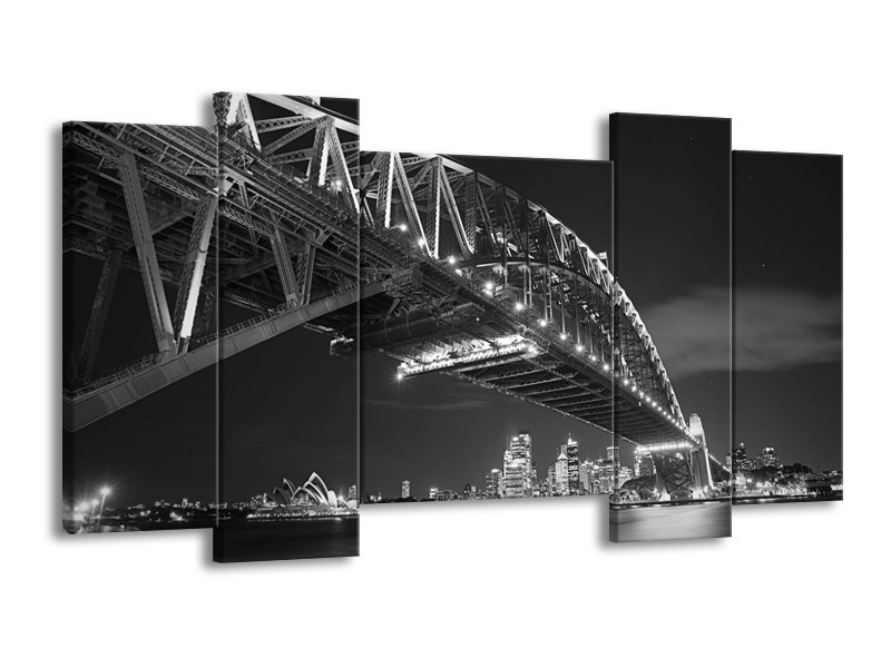 Canvas Schilderij Steden, Brug | Zwart, Wit, Grijs | 120x65cm 5Luik