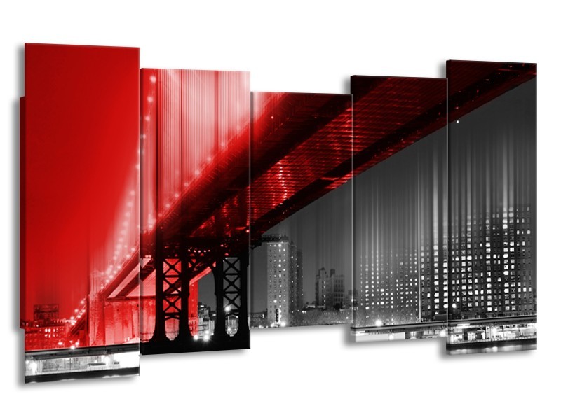 Canvas Schilderij Steden, Brug | Zwart, Wit, Rood | 150x80cm 5Luik