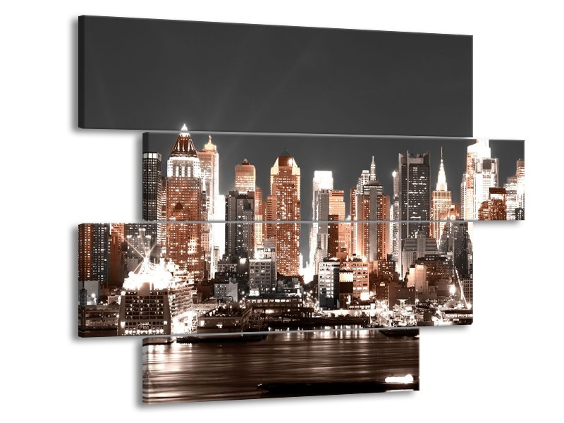 Canvas Schilderij Steden | Grijs, Bruin, Goud | 115x85cm 4Luik