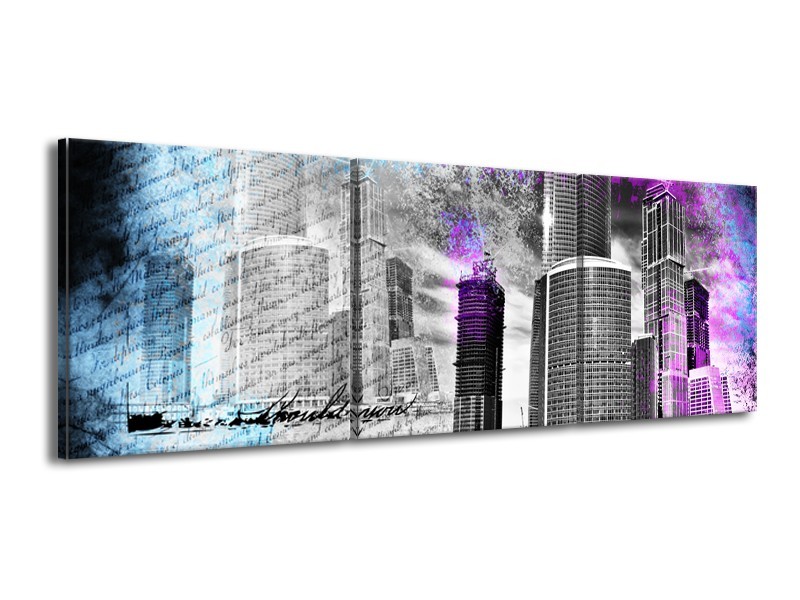 Canvas Schilderij Steden | Grijs, Paars, Blauw | 150x50cm 3Luik