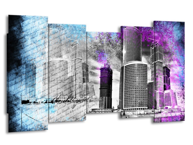Canvas Schilderij Steden | Grijs, Paars, Blauw | 150x80cm 5Luik