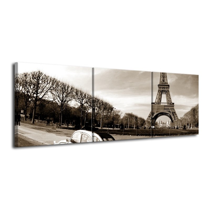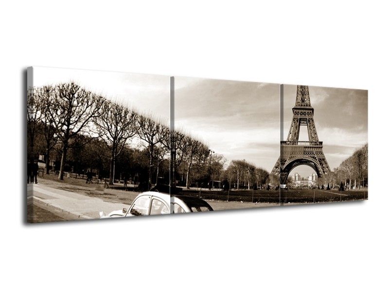 Canvas Schilderij Steden, Parijs | Sepia | 120x40cm 3Luik