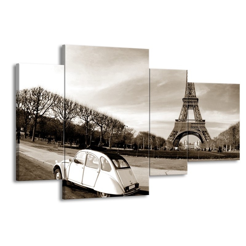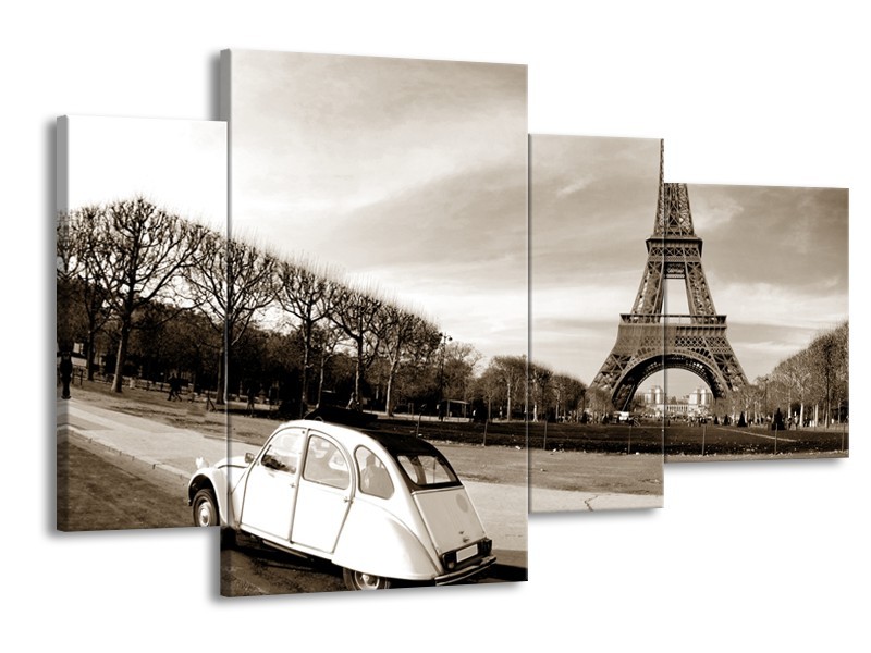 Canvas Schilderij Steden, Parijs | Sepia | 120x75cm 4Luik