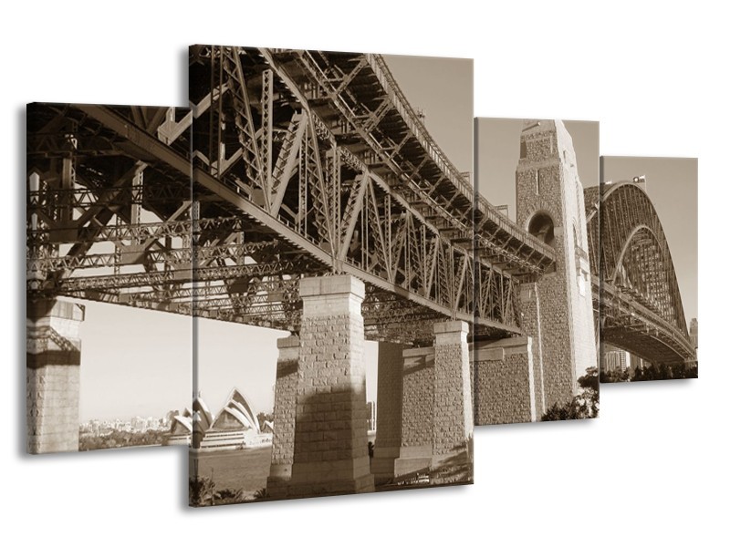 Canvas Schilderij Steden | Sepia | 160x90cm 4Luik