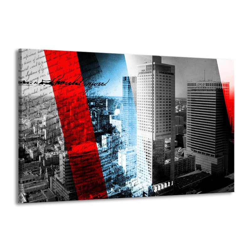 Canvas Schilderij Steden, Wolkenkrabber | Zwart, Blauw, Rood | 140x90cm 1Luik