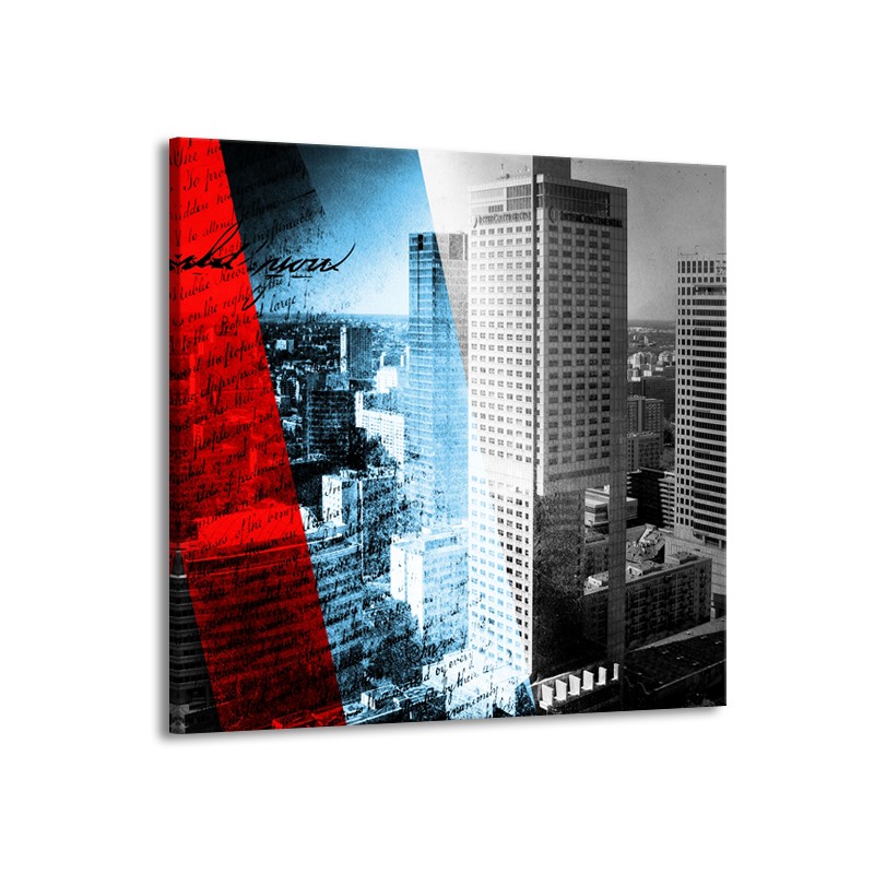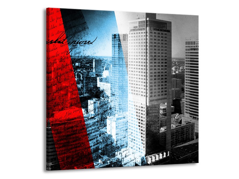 Canvas Schilderij Steden, Wolkenkrabber | Zwart, Blauw, Rood | 50x50cm 1Luik