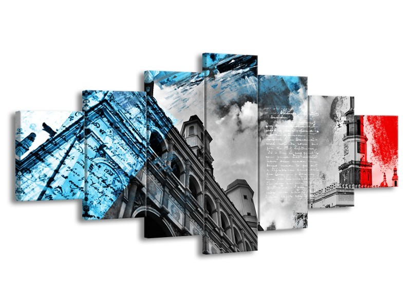 Canvas Schilderij Steden | Zwart, Blauw, Rood | 210x100cm 7Luik