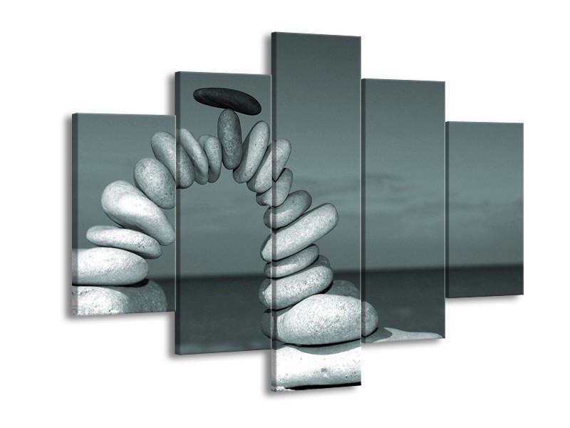 Canvas Schilderij Stenen | Grijs, Groen | 150x105cm 5Luik