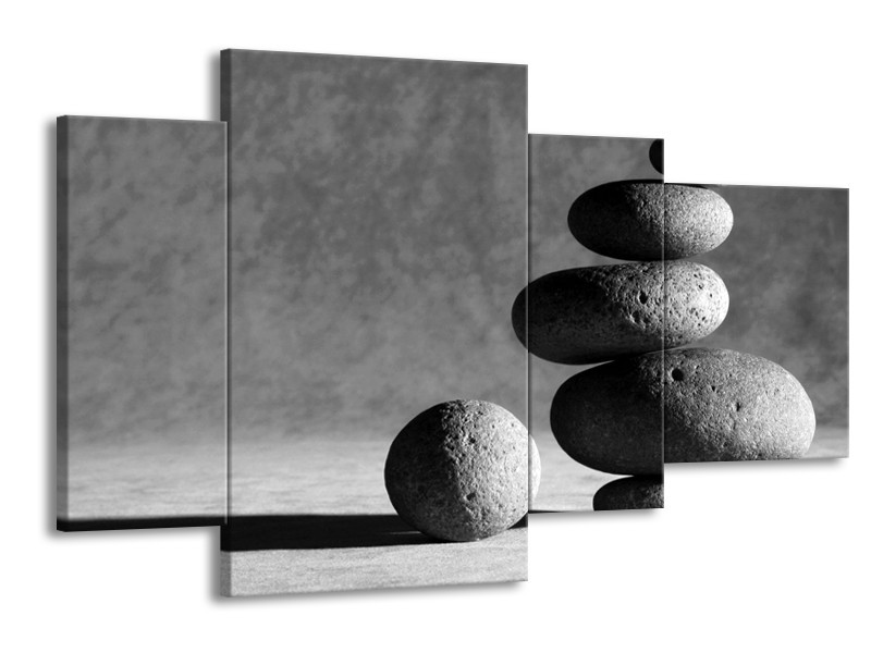 Canvas Schilderij Stenen | Grijs, Zwart | 120x75cm 4Luik