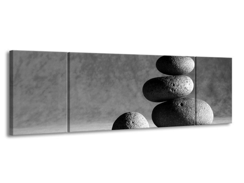 Canvas Schilderij Stenen | Grijs, Zwart | 170x50cm 3Luik