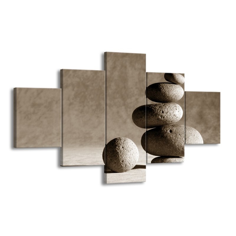 Canvas Schilderij Stenen | Sepia | 125x70cm 5Luik